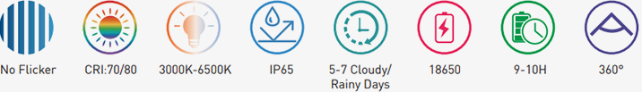 • Сонячна енергія: Використовує сонячні батареї для зарядки, що робить його екологічно чистим та стійким освітлювальним рішенням.